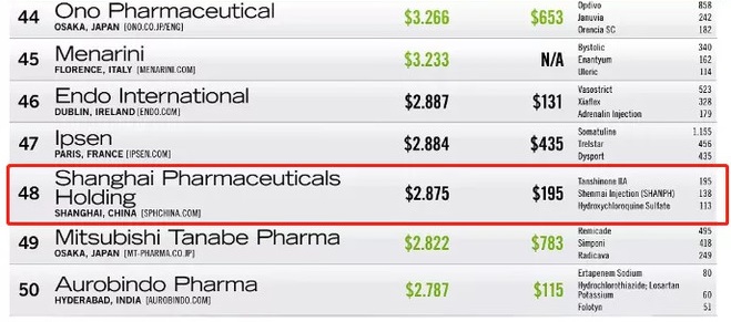 日前,PharmExec(美國(guó)制藥經(jīng)理人雜志)根據(jù)處方藥銷售收入對(duì)全球制藥企業(yè)前50強(qiáng)進(jìn)行了排位,上海醫(yī)藥憑借亮眼表現(xiàn)躋身榜單,位列第48位。